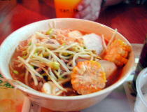 | フードコートで一休み。 | 夫が頼んだタイ風ヌードル。 見た目は札幌ラーメン(味噌) そっくり。 |