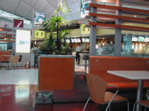 | この奥一番が搭乗口 | 待合室の上のフードコート。 | 充実してはいるけど・・ |