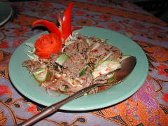 | ヤムヌア(牛肉入りサラダ)覚悟し ていたけど意外にもピリカラ程度 |