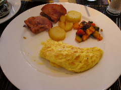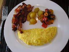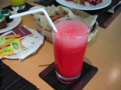 バリ島 7日目(最終日) 最終日ともなると、(たいして動いてるわけでもないのに)朝起きれなくなってくる。 朝食は今まで8時にしてもらっていたのだが、今日は寝坊を想定して、10時にオーダー。 正解だった!(笑) 朝食後、昼にはここをチェックアウトしなくてはいけないわけだが、22時のフライト時間までまでを どうしようか悩む。 東南アジアに来るとこのパターン(ホテルは昼までだが、飛行機は深夜発)が、多いのだが、 これが歳とともに、じわじわとボディーブローのように効いてくるようになってきた。 マッサージやスパなどをやるという手もあるが、これが以外にくせもので、あとから飛行機でもみ返し がきたり、下手するとオイルでベタベタのままナイトフライトという事にもなりかねない。 ここは「ホテル」ではないので、リタイアリングルームもないし、レイトチェックアウトにしてもらえれば、一番良い のだが、無料でアーリーチェックインをさせてもらった上に、レイトというのはちょっと頼みにくい。 クタの繁華街で4〜5千円程度の安いホテルを取るか、追加料金を払ってここでレイトにしてもらうか 考えた末、US100ドル以内だったら、ここでレイトを頼もうという事に意見がまとまり、レセプションで 聞いてみたら、すんなり「無料で18時までオーケー!」という。 日本人は夜遅いフライトの人が多いという事を、キチンと把握していたらしい。 本当に親切なヴィラだ!! その上、「お掃除もしますか?」と聞いてくれたが、それはあまりに申し訳ないので断った。 別に汚してもいないし・・・