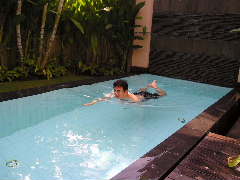 バリ島 6日目 この辺りになってくると、今日が何曜日なのかもわからないぐらい、頭がゆるくなってくる(爆) バトラー氏には「今日の予定は?」と聞かれるものの、今日もひたすらカムフォータブル。 朝食を食べて、ソファーでゴロゴロ読書をしていたら、ルームメイキングが来てしまった。 普段ならリゾートでも、この時間帯は外へ出るようにしているが、ここにはロビーフロアやシェアプールなどの パブリックスペースもないので、プールサイドのデッキに移動して、お部屋とプールの掃除を眺める。 「へ〜!?こんな風にやるんだ」と、見ていて飽きない。 結局都合6人ぐらいの人が出たり入ったりして、30分ぐらいかけてお掃除終了。 ヴィラだと広いから普通のホテルルームよりも人出がいるんだなあ・・・・ もう少し多めにチップ渡すべきだったかも?!