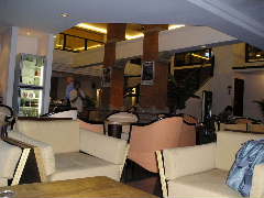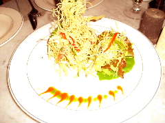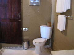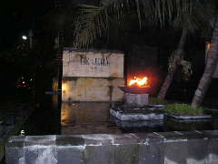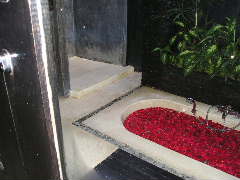 この「アルバリ」は、2ベッドルームで、朝食、バトラーサービス込みで、370US$なのだそう。 (TAXなども込み) まあこのぐらいの所としては妥当な値段でしょう。日本で紹介されている値段はもう少し高いかも?! この後も、近くにあった建設中の分譲のヴィラ「セントーサ」を見せてもらうが、ここでカメラが電池切れを 起こしてしまい、写真は撮れなかった。(ここの購入者はフランス人が8割との事) でも分譲ヴィラって本当に豪華だわ。 3ベッドルームが主体で、お値段は4〜50万US$というのが相場らしい。 私はてっきり、3ベッドルームなら3組の夫婦や家族で住むものなのかと勘違いしていたのだが、 住むのは1組(1家族)で、要するに、マスターベッドルーム以外はお客様用らしいのだ。 なんて贅沢!と思うけど、欧米の金持ちにはそのぐらい当たり前の感覚なんでしょうね?!(貧乏性) 分譲ヴィラめぐりをしている最中、間違って地元のロスメンみたいなところに入ってしまった。 入口辺りを見て「あ、これはヴィラではないわ」と気付いたものの、エントランスのところにいたおじさんに 「見せてほしい」と、言ってしまった手前、途中で要らないと断るわけにもいかず、まあ話のタネに ロスメンなどを見るのも良いかなと思って、部屋を見学。 まあまあきれいに掃除してあるし、トイレにヤモリはいたけど、ロスメンならこんなものかな? 一応社交辞令で「1泊いくら?」と聞いたら、満面の笑みで 「バスなしのスタンダードルームで250USドル、バスつきのスーペリアで350USドル」 ですと・・・・(大汗) はい〜〜〜!!??日本人が相場を知らないと思って吹っかけてるのか?それとも真面目に言ってるのか? (ありえない事に、貰ったパンフレットにはその通りの値段が書いてあった) 私の見立てでは、部屋や施設を考えると精々1泊2〜30ドル。 このロスメンの経営者は、250ドル出せばリッツカールトンのデラックスオーシャンビューに余裕で泊 まれるという事を知らないらしい・・・・ここでは宿泊客を1人も見なかった。 いい目の保養をさせて貰ったところで、トボトボとヴィラへ帰る。 夕食は、夫は「昨日のグリーンカレーが美味しかったから、またルームサービスにしよう!」という。 しかし提案を振り切って、「リビングルーム」というレストランに行く事に。 だって夜もルームサービスだと、朝昼晩全部お部屋食という事になるんだもん。 せっかく旅行に来たんなら、一食ぐらい外に出たい。 なんでもガイドブックによると、「リビングルーム」は、バリの欧米人に大人気の素敵なレストラン で、ピークシーズンにはなかなか予約も取れないぐらいというから、期待も膨らむ。 入口には、少々厳重っぽい感じでガードマンが何人か居たので、テロの後はセキュリティー にも気を使っているのが分かる。 しかし・・・ 中に入ってみてビックリ。。 丁度食事時で、しかもかなりのキャパだというのにお客さんが全く居ない。「ここはクラブか〜?」 そして中がどんな風なのかさっぱりわからず、足元もおぼつかないほど照明が暗いのだ。 ウエイトレス嬢がメニューを持ってきてくれるが、ロウソクに近づけても暗すぎてさっぱり読めない。 余程ドリンクだけ飲んで帰ろうかと思ったが、突き出しのパンやらナッツやらをどんどん持ってくるので それも出来なくなってしまった。 「どうしよう・・・」 夫は鬼の首を取ったように「だからルームサービスにしようって言ったのに」と、ひどくおかんむりある。 とにかくなにか頼まないとしょうがないので、何とか読めたオードブル(タイ風サラダ)とメイン2品 (ミーゴレン、アジア風シーフードパスタ)を頼む。 しかしお皿がきても、暗すぎてそれが何なのかさえおぼつかない。 極めつけは・・・・「味!!」 とにかくどれもしょっぱくて、食べれたもんじゃないのだ。欧米人の味覚はこれが美味しいと感じるのか? とりあえず口にしてみたら、タイ風サラダだけは分かったが、依然としてミーゴレンとアジア風 シーフードパスタはどっちがどっちなのかさえ判別できなかった。 どれも半分も食べないうちにギブアップ。 そそくさと帰って来たが、その上これまで全然刺されてなかった、蚊には刺されるし・・と踏んだり蹴っ たりのディナーであった。人のいう事はちゃんと聞くべきですね。とほほ ヴィラに戻って、NHKTVを見ていたら、荒川静香嬢が、アマチュア引退。プロに転向というニュースが・・・ しーちゃんの場合、もう2〜3年前から、早く辞めたいオーラがありありだったし、五輪で金メダルも取った 後なので、ほぼ想定の範囲内だったが、村主さんも現役続行宣言をしているこの時期になあ・・・ でもこういうベテランの後輩に譲る姿勢も大事!!若手の成長をベテランが阻んではいけないのだ! しーちゃん本当に今までお疲れ様!!プロでも沢山の人を魅了してください!!