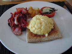 バリ島 5日目 朝8時に朝食を頼んでおいたら、8時数分前にピンポンが鳴る。 お茶以外は、だいたい出来上がったものを運ぶだけなので8時ピッタリには食事が出来るように 配慮してあり、時間などもとても正確。 私たちはレセプション棟のすぐとなりだったので、熱々を頂けました。 お昼近くに、マッサージをしてもらいにスミニャックの「chill」へヴィラの車で送ってもらう。 こういうのは普通送りのみなのだが、ここはお迎えも来てくれるとの事。 ピークシーズンではなかったので、満室ではないとは言え、本当にサービスもグーだわ。 チルでのマッサージを終えた後、近くの「ザ・ヴィラス」のレストランで利用出来るドリンク券を貰っ たので、ブラブラと行って見る。 ついでに『ザ・ヴィラス』のお部屋も見せてもらえないか交渉してみたら、空き部屋があるので スンナリオーケー!スタッフの一人が一緒についてきて親切に説明してくれた。 見せてもらったのはワンベッドルームで、敷地はかなり広くプールも大きいものの、 やはりこの手のヴィラの先駆けだけあって、古いなあという感じも否めない。 あと、バリ式屋根の天井がどうしても暗いのよね。まあこれは好き好きかもしれない。 キッチンはベッドルームを出たすぐの所、リビングスペースは2階にあり、そのどちらも半屋外。 バストイレも半屋外であった。 場所としては“これ以上ない”という便利なロケーションで、すぐ向かいには「バリデリ」のスーパーもある ので小さな子供さん連れには良いでしょう。 けど最近どんどん出来ている新しいヴィラと比べると、少々見劣りするのはしょうがないか・・?! ここはレストランやスパ等パブリックスペースも沢山あり、ホテルタイプのヴィラという感じ。 でもなぜか全体のインテリアがインドネシア風というよりインド風なのだ?!