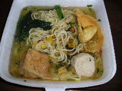 昼食はこの辺りで適当なレストランに入ろうと思ったのだが、ヴィラスの向かい側にある、「バリデリ」の スーパーに入ったら、あまりにもお惣菜類が美味しそうだったので、ここで色々購入して、ヴィラでのんびり 食べる事にする。 最初はバゲットサンドなどを作ってもらおうかと思ったのだが、日本食なども充実しているのを見て 路線変更。 乾麺のそうめん、タレ、ツナ缶を買って、涼しげにそうめんの昼食にした。 ネギがないのが寂しいところだが、日本風のそれがなく、乾燥ものも売ってなかったので、ネギは 端折ることにした。 初めての経験でなかなか楽しめたけど、日本食の材料が少々高いのが難点かな?! その上残ったものはどうする事もできず、捨ててきたし・・・