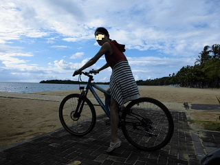 今日は、朝食をお弁当にしてもらって、ビーチまでサイクリング。